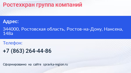 Ростехкран, группа компаний по адресу 344000, Ростовская область, Ростов-на-Дону, Нансена, 148а в дальнейшем Организация, размещена в следующих категориях: