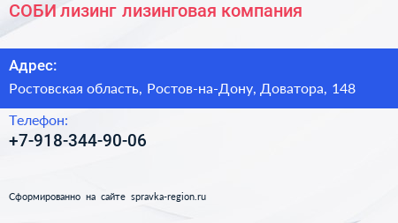 СОБИ-лизинг, лизинговая компания по адресу Ростовская область, Ростов-на-Дону, Доватора, 148 в дальнейшем Организация, размещена в следующих категориях: