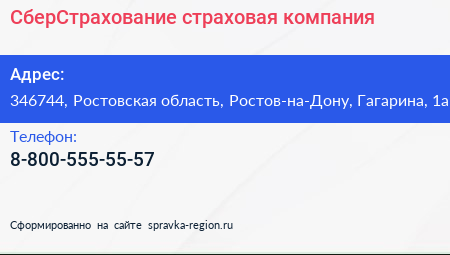 СберСтрахование, страховая компания по адресу 346744, Ростовская область, Ростов-на-Дону, Гагарина, 1а в дальнейшем Организация, размещена в следующих категориях: