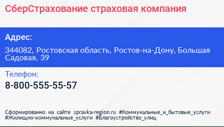 СберСтрахование, страховая компания по адресу 344082, Ростовская область, Ростов-на-Дону, Большая Садовая, 39 в дальнейшем Организация, размещена в следующих категориях: