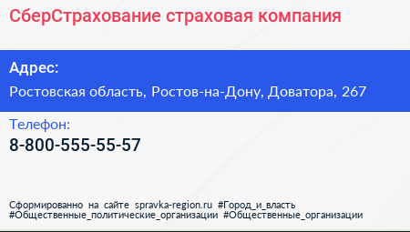 СберСтрахование, страховая компания по адресу Ростовская область, Ростов-на-Дону, Доватора, 267 в дальнейшем Организация, размещена в следующих категориях: