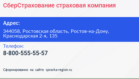 СберСтрахование, страховая компания по адресу 344058, Ростовская область, Ростов-на-Дону, Краснодарская 2-я, 135 в дальнейшем Организация, размещена в следующих категориях: