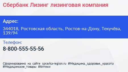 Сбербанк Лизинг, лизинговая компания по адресу 344018, Ростовская область, Ростов-на-Дону, Текучёва, 139/94 в дальнейшем Организация, размещена в следующих категориях: