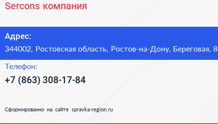 Sercons, компания по адресу 344002, Ростовская область, Ростов-на-Дону, Береговая, 8 в дальнейшем Организация, размещена в следующих категориях: