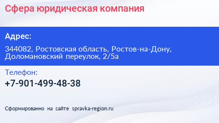Сфера, юридическая компания по адресу 344082, Ростовская область, Ростов-на-Дону, Доломановский переулок, 2/5а в дальнейшем Организация, размещена в следующих категориях:
