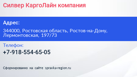 Силвер КаргоЛайн, компания по адресу 344000, Ростовская область, Ростов-на-Дону, Лермонтовская, 197/73 в дальнейшем Организация, размещена в следующих категориях: