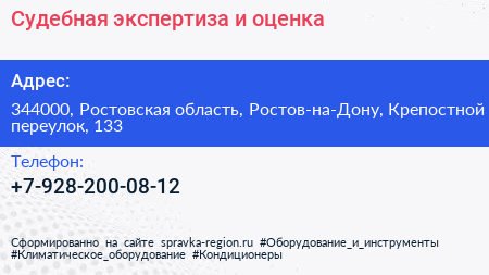 Судебная экспертиза и оценка по адресу 344000, Ростовская область, Ростов-на-Дону, Крепостной переулок, 133 в дальнейшем Организация, размещена в следующих категориях:
