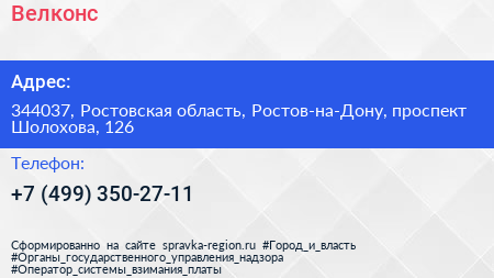 Велконс по адресу 344037, Ростовская область, Ростов-на-Дону, проспект Шолохова, 126 в дальнейшем Организация, размещена в следующих категориях: