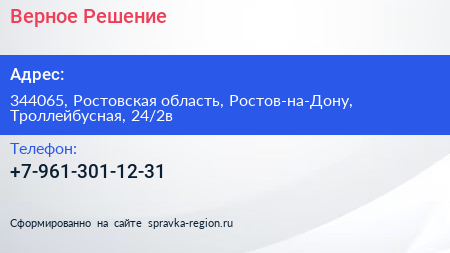 Верное Решение по адресу 344065, Ростовская область, Ростов-на-Дону, Троллейбусная, 24/2в в дальнейшем Организация, размещена в следующих категориях: