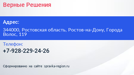 Верные Решения по адресу 344000, Ростовская область, Ростов-на-Дону, Города Волос, 119 в дальнейшем Организация, размещена в следующих категориях: