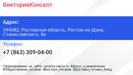 ВикторияКонсалт по адресу 344082, Ростовская область, Ростов-на-Дону, Станиславского, 8а в дальнейшем Организация, размещена в следующих категориях: