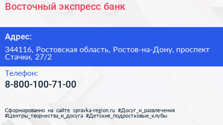 Восточный экспресс банк по адресу 344116, Ростовская область, Ростов-на-Дону, проспект Стачки, 27/2 в дальнейшем Организация, размещена в следующих категориях: