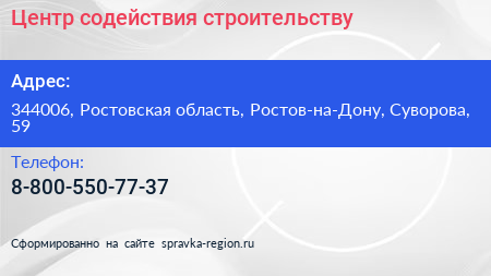Центр содействия строительству по адресу 344006, Ростовская область, Ростов-на-Дону, Суворова, 59 в дальнейшем Организация, размещена в следующих категориях: