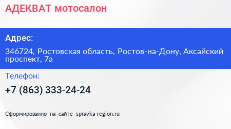 АДЕКВАТ, мотосалон по адресу 346724, Ростовская область, Ростов-на-Дону, Аксайский проспект, 7а в дальнейшем Организация, размещена в следующих категориях: