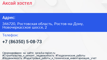Аксай, хостел по адресу 346720, Ростовская область, Ростов-на-Дону, Новочеркасское шоссе, 2 в дальнейшем Организация, размещена в следующих категориях: