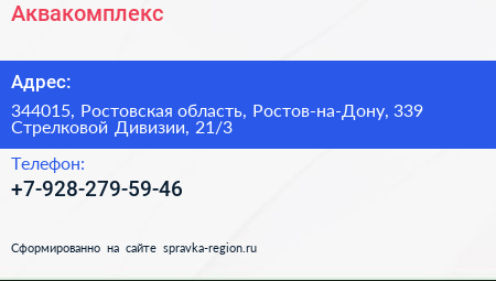 Аквакомплекс по адресу 344015, Ростовская область, Ростов-на-Дону, 339 Стрелковой Дивизии, 21/3 в дальнейшем Организация, размещена в следующих категориях: