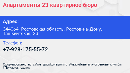Апартаменты 23, квартирное бюро по адресу 344064, Ростовская область, Ростов-на-Дону, Ташкентская, 23 в дальнейшем Организация, размещена в следующих категориях:
