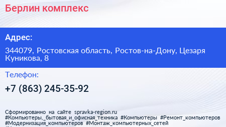 Берлин, комплекс по адресу 344079, Ростовская область, Ростов-на-Дону, Цезаря Куникова, 8 в дальнейшем Организация, размещена в следующих категориях: