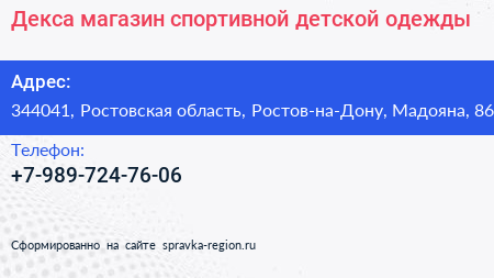 Декса, магазин спортивной детской одежды по адресу 344041, Ростовская область, Ростов-на-Дону, Мадояна, 86 в дальнейшем Организация, размещена в следующих категориях: