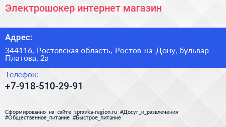 Электрошокер, интернет-магазин по адресу 344116, Ростовская область, Ростов-на-Дону, бульвар Платова, 2а в дальнейшем Организация, размещена в следующих категориях: