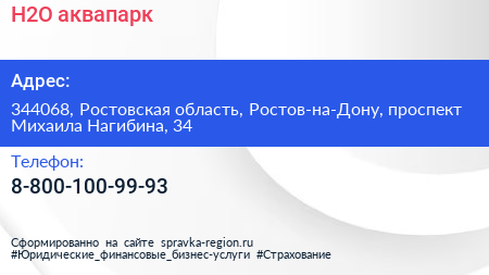 H2O, аквапарк по адресу 344068, Ростовская область, Ростов-на-Дону, проспект Михаила Нагибина, 34 в дальнейшем Организация, размещена в следующих категориях: