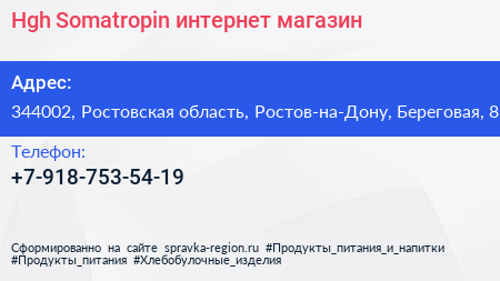 Hgh-Somatropin, интернет-магазин по адресу 344002, Ростовская область, Ростов-на-Дону, Береговая, 8 в дальнейшем Организация, размещена в следующих категориях: