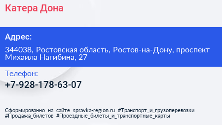 Катера Дона по адресу 344038, Ростовская область, Ростов-на-Дону, проспект Михаила Нагибина, 27 в дальнейшем Организация, размещена в следующих категориях: