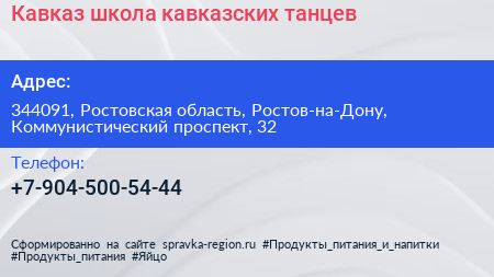 Кавказ, школа кавказских танцев по адресу 344091, Ростовская область, Ростов-на-Дону, Коммунистический проспект, 32 в дальнейшем Организация, размещена в следующих категориях: