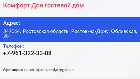 Комфорт-Дон, гостевой дом по адресу 344064, Ростовская область, Ростов-на-Дону, Обливская, 28 в дальнейшем Организация, размещена в следующих категориях: