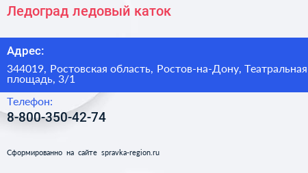 Ледоград, ледовый каток по адресу 344019, Ростовская область, Ростов-на-Дону, Театральная площадь, 3/1 в дальнейшем Организация, размещена в следующих категориях:
