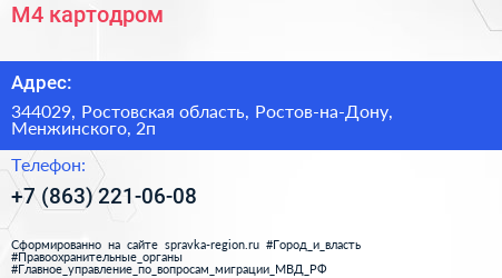 М4, картодром по адресу 344029, Ростовская область, Ростов-на-Дону, Менжинского, 2п в дальнейшем Организация, размещена в следующих категориях: