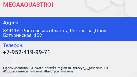 MEGAAQUASTROI по адресу 344116, Ростовская область, Ростов-на-Дону, Батуринская, 159 в дальнейшем Организация, размещена в следующих категориях: