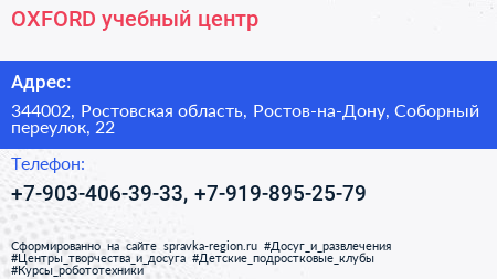 OXFORD, учебный центр по адресу 344002, Ростовская область, Ростов-на-Дону, Соборный переулок, 22 в дальнейшем Организация, размещена в следующих категориях: