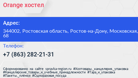 Orange, хостел по адресу 344002, Ростовская область, Ростов-на-Дону, Московская, 68 в дальнейшем Организация, размещена в следующих категориях: