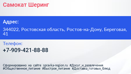 Самокат Шеринг по адресу 344022, Ростовская область, Ростов-на-Дону, Береговая, 41 в дальнейшем Организация, размещена в следующих категориях: