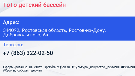 ТоТо, детский бассейн по адресу 344092, Ростовская область, Ростов-на-Дону, Добровольского, 6в в дальнейшем Организация, размещена в следующих категориях: