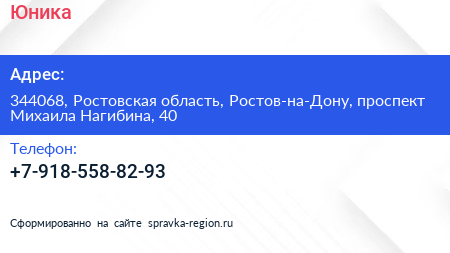 Юника по адресу 344068, Ростовская область, Ростов-на-Дону, проспект Михаила Нагибина, 40 в дальнейшем Организация, размещена в следующих категориях: