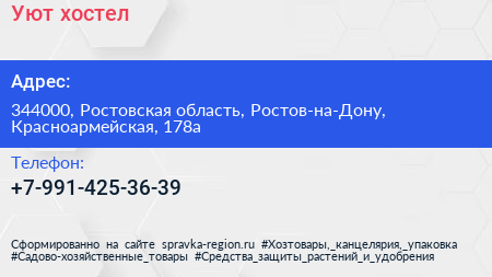 Уют, хостел по адресу 344000, Ростовская область, Ростов-на-Дону, Красноармейская, 178а в дальнейшем Организация, размещена в следующих категориях: