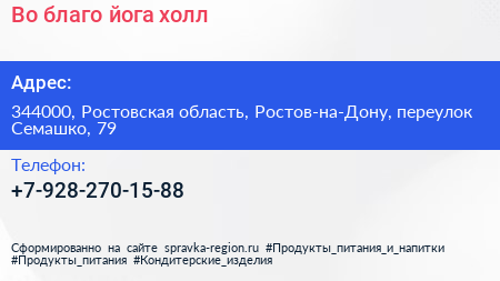 Во благо, йога-холл по адресу 344000, Ростовская область, Ростов-на-Дону, переулок Семашко, 79 в дальнейшем Организация, размещена в следующих категориях: