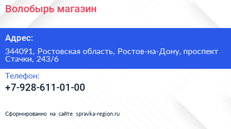 Волобырь, магазин по адресу 344091, Ростовская область, Ростов-на-Дону, проспект Стачки, 243/6 в дальнейшем Организация, размещена в следующих категориях: