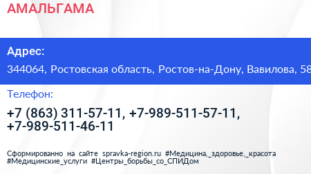 АМАЛЬГАМА по адресу 344064, Ростовская область, Ростов-на-Дону, Вавилова, 58 в дальнейшем Организация, размещена в следующих категориях: