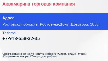 Аквамарина, торговая компания по адресу Ростовская область, Ростов-на-Дону, Доватора, 185а в дальнейшем Организация, размещена в следующих категориях: