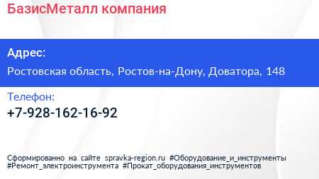 БазисМеталл, компания по адресу Ростовская область, Ростов-на-Дону, Доватора, 148 в дальнейшем Организация, размещена в следующих категориях: