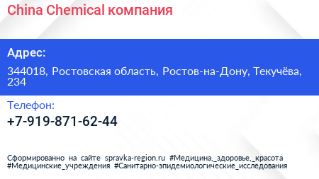 China Chemical, компания по адресу 344018, Ростовская область, Ростов-на-Дону, Текучёва, 234 в дальнейшем Организация, размещена в следующих категориях: