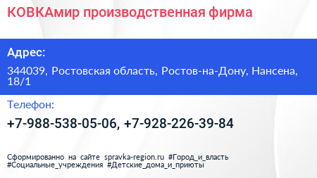 КОВКАмир, производственная фирма по адресу 344039, Ростовская область, Ростов-на-Дону, Нансена, 18/1 в дальнейшем Организация, размещена в следующих категориях: