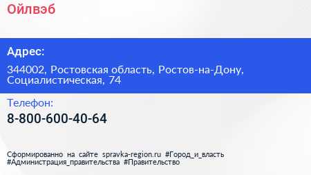 Ойлвэб по адресу 344002, Ростовская область, Ростов-на-Дону, Социалистическая, 74 в дальнейшем Организация, размещена в следующих категориях: