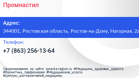 Промнастил по адресу 344001, Ростовская область, Ростов-на-Дону, Нагорная, 2а в дальнейшем Организация, размещена в следующих категориях: