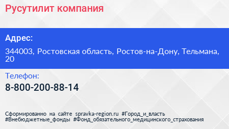 Русутилит, компания по адресу 344003, Ростовская область, Ростов-на-Дону, Тельмана, 20 в дальнейшем Организация, размещена в следующих категориях: