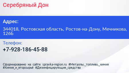 Серебряный Дон по адресу 344018, Ростовская область, Ростов-на-Дону, Мечникова, 126Б в дальнейшем Организация, размещена в следующих категориях: