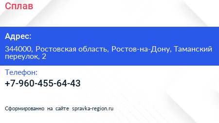 Сплав по адресу 344000, Ростовская область, Ростов-на-Дону, Таманский переулок, 2 в дальнейшем Организация, размещена в следующих категориях: